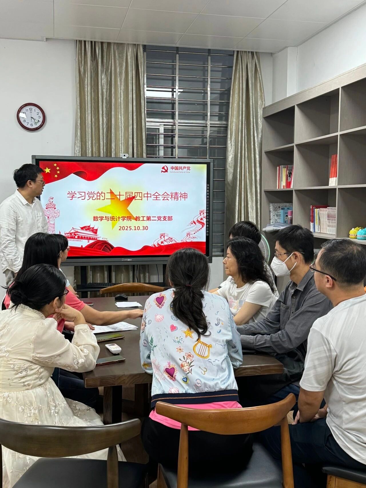 各师生党支部紧扣“学深悟透、学以致用”目标,构建“教师支部带学生支部”的联动学习格局,以“三会一课”、主题党日为载体,通过师生支部联动、学科知识赋能,将党的二十届四中全会精神学习与学科特色、教学科研、师生成长发展深度融合,将党的二十届四中全会精神真正融入课堂、深入头脑。