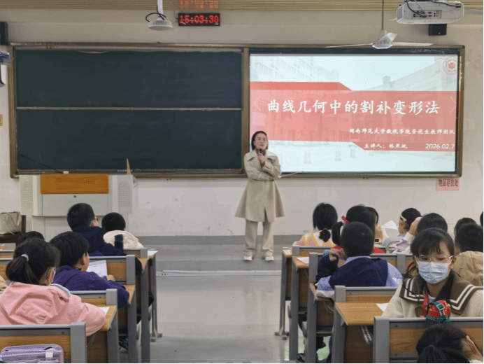 院长林亚南教授为营员们带来了冬令营首场专题报告——《从“巳巳如意”到“骐骥驰骋”——从央视春节晚会主题谈起》。林教授以生动实例阐述数学中的平面运动,从图形的平移、旋转到对称图形、中心对称图形,层层剖析数学图形的魅力,为数学几何的学习提供理论基石。讲座互动频频,同学们在感叹数学图形之美的同时,也对平面运动轨迹融合创新产生了浓厚兴趣。