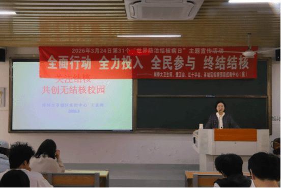 讲座中,王素梅专家紧扣结核病防控主题,从常识溯源、流行现状、症状诊疗、校园防控四个维度开展系统讲解,为同学们带来了一场兼具历史底蕴与现实意义的健康科普。她以《红楼梦》经典形象与名人患病史实为切入点,深入解读“白色瘟疫”的历史渊源,结合详实数据分析结核病全球流行态势与传播特点,明确校园防控关键要点;细致讲解肺结核典型症状,围绕“早发现、早报告、早治疗”原则普及防治知识,阐明结核病可防可治的科学理念,从传播途径、易感人群、规范诊疗等方面纠正认知误区;结合校园实际,提出严把入学体检、强化健康教育、保持环境通风等精准防控措施,引导师生将科学防护理念内化于心、外化于行。