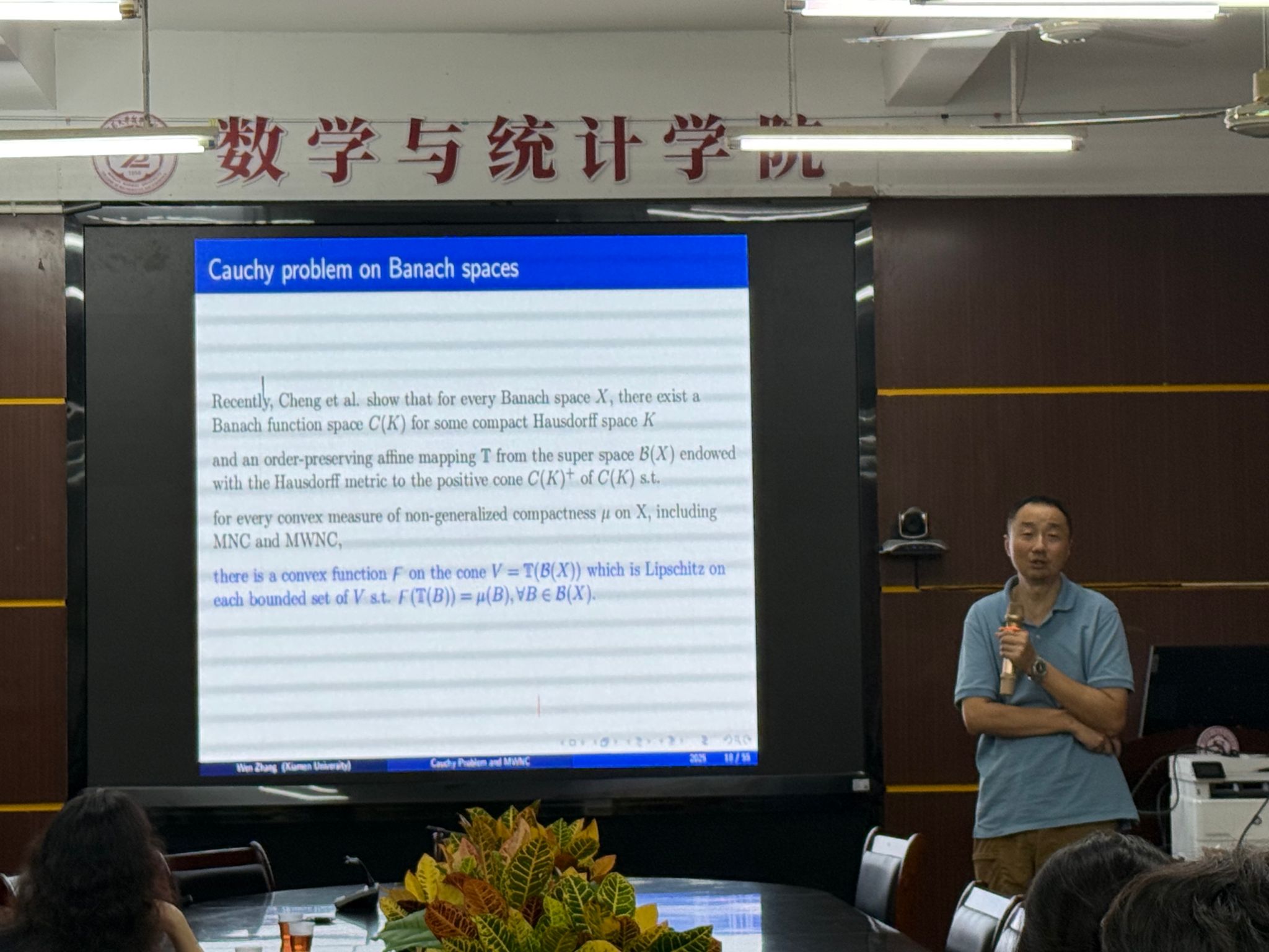 邀请,9月26日下午,厦门大学张文教授在砺志楼114作了题为《On a Cauchy problem in Banach spaces》的讲座。相关师生聆听了此次讲座,讲座由卢福良老师主持。