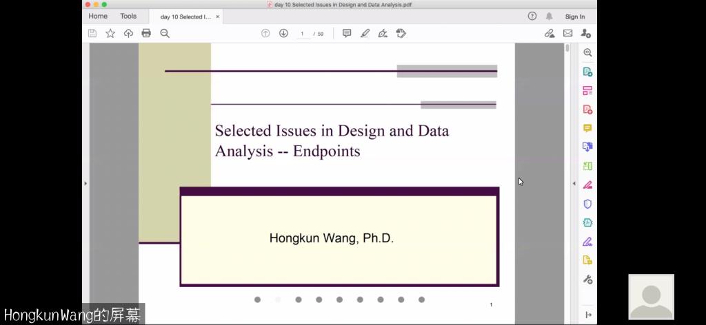 邀请,12月21日上午,美国乔治城大学王宏鲲教授在Zoom会议作了题为《Selected Issues in Design and Data Analysis--Endpoints》的报告,相关师生聆听了此次报告。