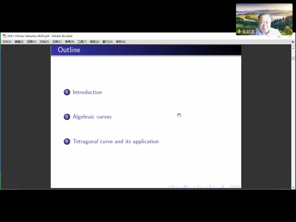 邀请,5月20日上午,郑州大学耿献国教授在腾讯会议作了题为《Tetragonal curves and algebro-geometric solutions to the Hirota-Satsuma coupled hierarchy》的报告。相关师生在砺志楼114聆听了此次报告,报告由樊方成副教授主持。