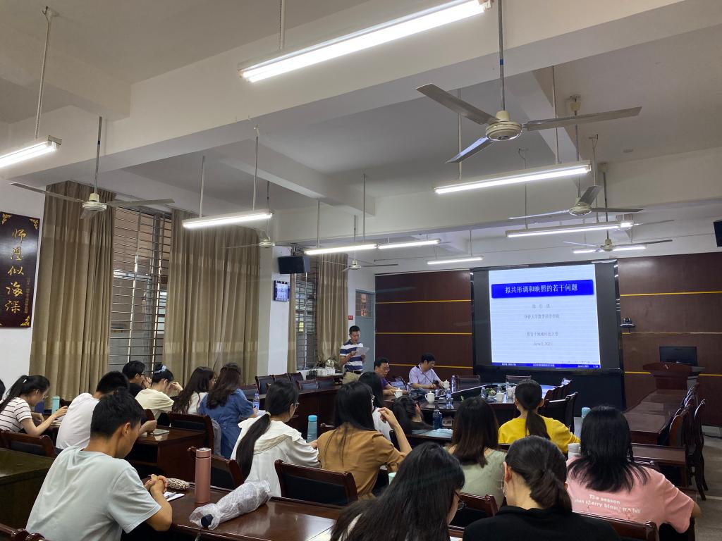 陈行堤教授在砺志楼114作了题为《调和拟共形映照的若干问题》的报告。陈锦坤副教授主持报告,相关师生聆听了此次报告。