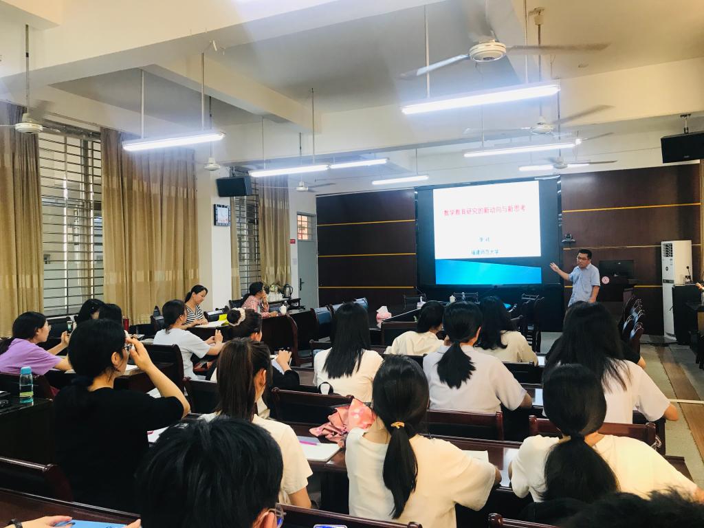 邀请,6月4日下午,福建师范大学李祎教授在砺志楼114作了题为《数学教育研究的新动向与新思考》的报告。相关师生聆听了此次报告,报告由周仕荣教授主持。