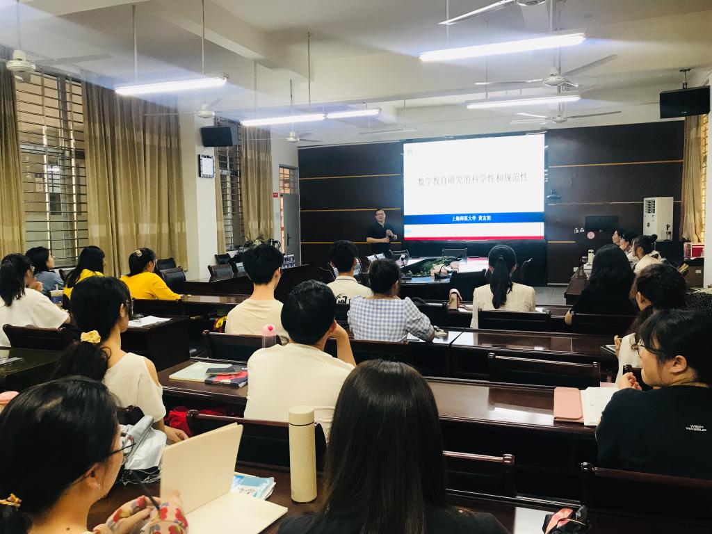 邀请,6月5日下午,上海师范大学黄友初教授在砺志楼114作了题为《数学教育研究的科学性和规范性》的报告。相关师生聆听了此次报告,报告由周仕荣教授主持。
