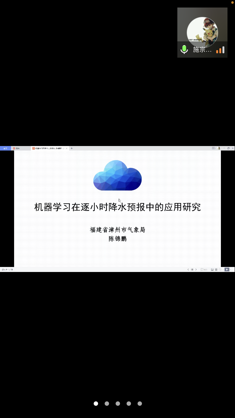 邀请,6月22日下午,福建省漳州市气象局陈锦鹏工程师在腾讯会议作了题为《机器学习在逐小时降水预报中的应用研究》的报告。相关师生聆听了此次报告,报告由刘群副教授主持。