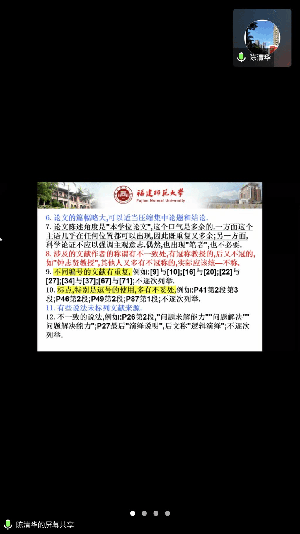 邀请,7月8日晚上,福建师范大学陈清华教授在腾讯会议作了题为《从专家评阅意见看数学教育类研究生学位论文存在的问题》的报告,相关师生聆听了此次报告。