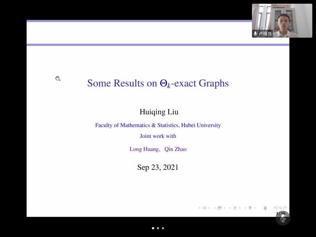 邀请,9月23日上午,湖北大学刘慧清教授在腾讯会议作了题为《Some results on $\Theta_k$-exact graphs》的报告。相关师生聆听了此次报告,报告由卢福良教授主持。