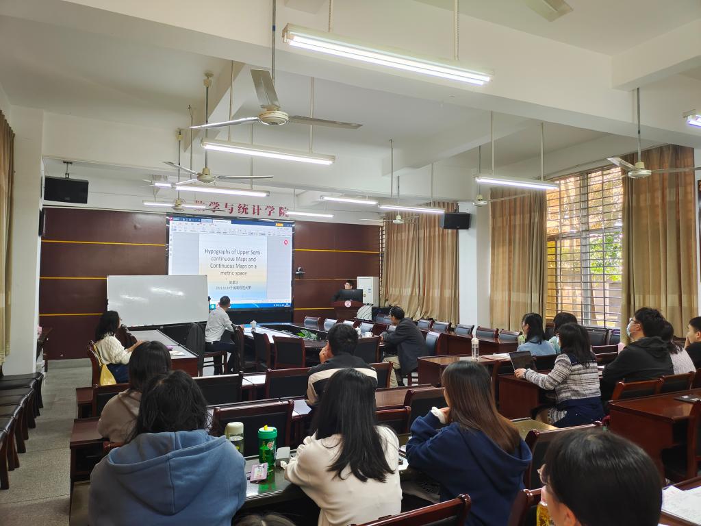吴拿达博士在砺志楼114作了题为《Hypographs of Upper Semi-continuous Maps and Continuous Maps on a metric space》的报告。相关师生聆听了此次报告,报告由李长清博士主持。