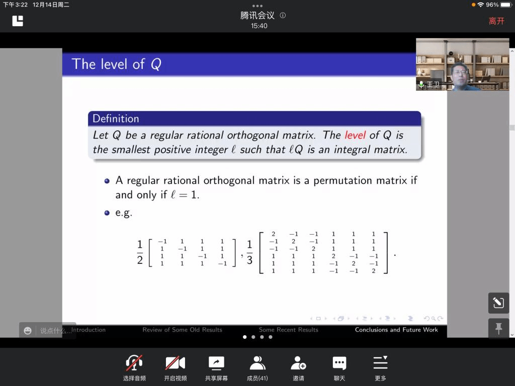 邀请,12月14日下午,西安交通大学王卫教授在腾讯会议作了题为《Some Recent Developments on the Generalized Spectral Characterizations of Graphs》的报告。相关师生聆听了此次报告,报告由卢福良教授主持。