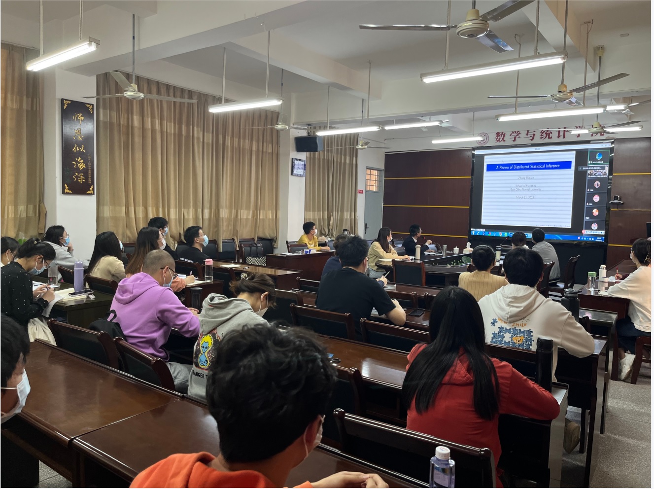 邀请,3月11日下午,华东师范大学张日权教授在腾讯会议作了题为《Review of Distributed Statistical Inference(分布式统计分析)》的报告。相关师生聆听了此次报告,报告由施建华老师主持。