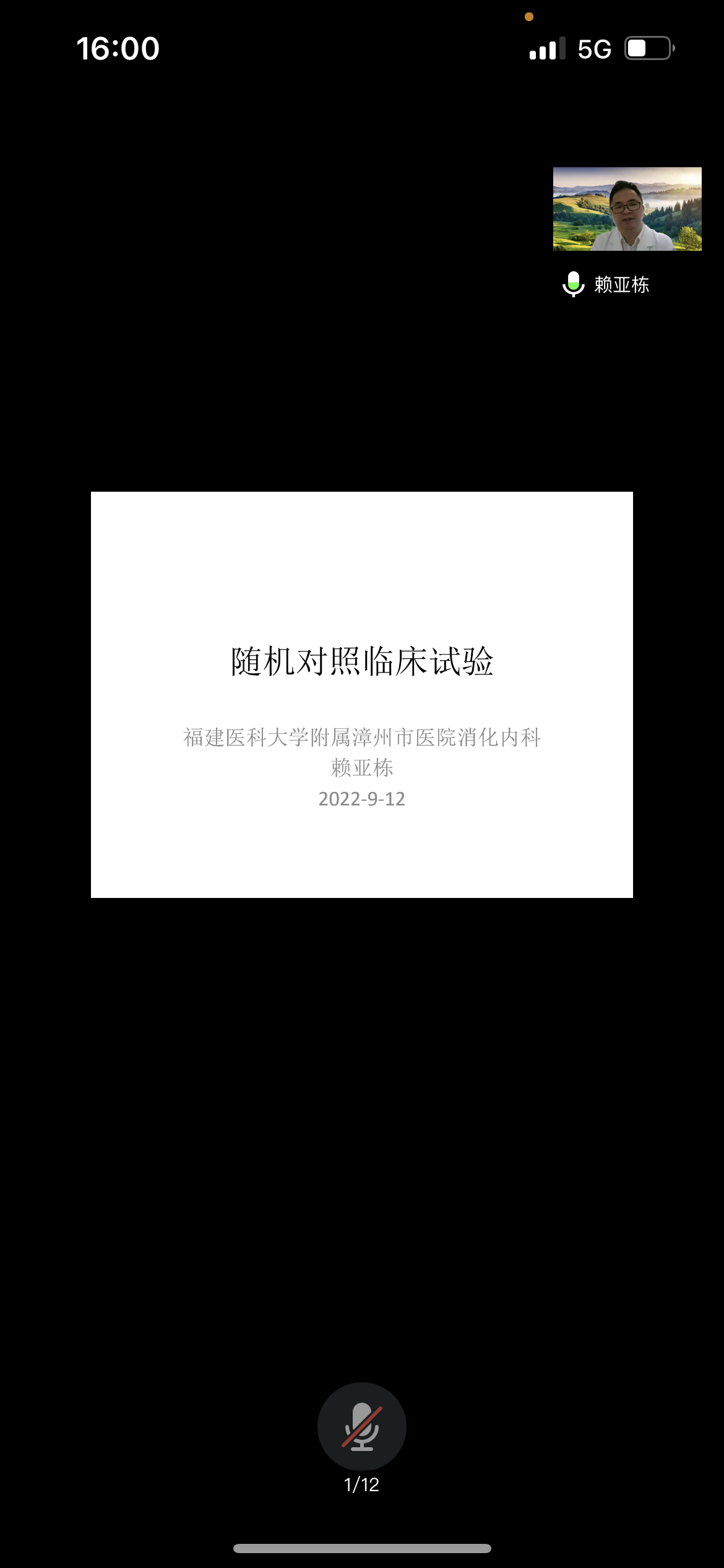 邀请,9月19日下午,福建医科大学附属医院赖亚栋主任在腾讯会议作了题为《随机对照临床试验》的报告。相关师生聆听了此次报告,报告由施建华老师主持。