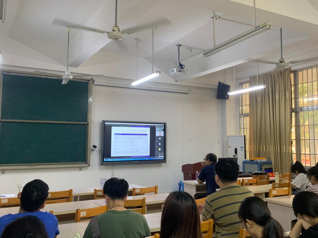 报告中,史福贵教授在此次会议中的这份报告中,我们首先在模糊实直线上给出了三种自然的模糊化拓扑,然后提出了模糊化伪拟度量的概念,证明了上述三种模糊化拓扑分别可以由三个模糊化伪拟度量所诱导。报告结束后,在座的师生就相关研究问题进行了探讨和交流。