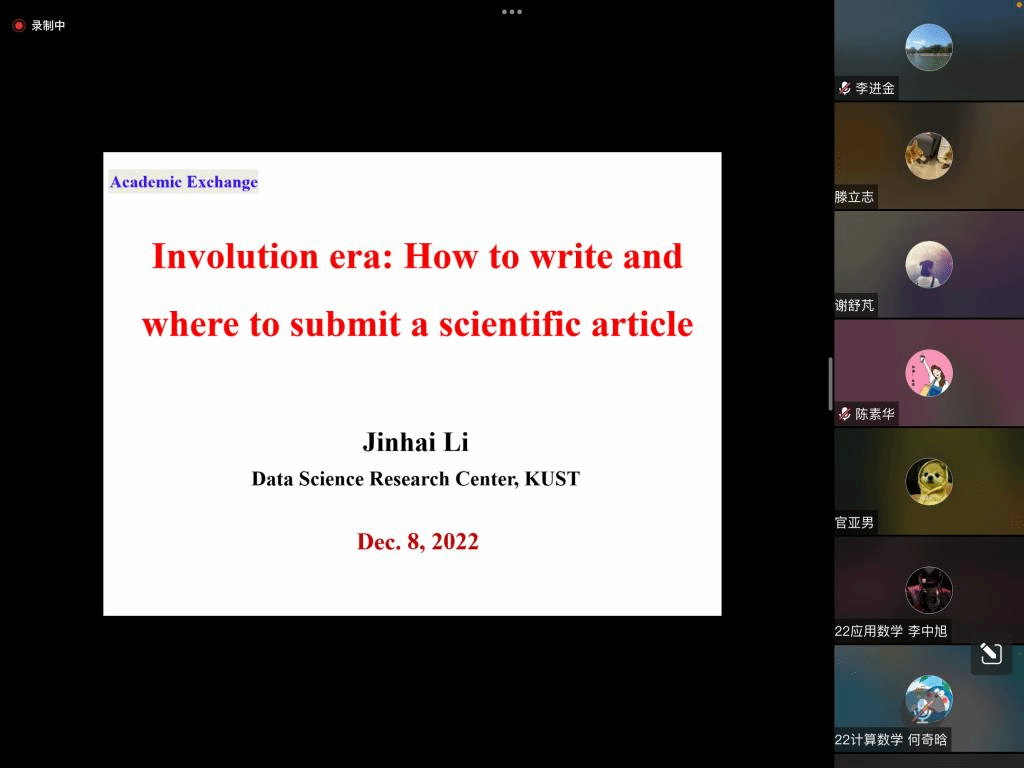 邀请,12月8日下午,昆明理工大学李金海教授在腾讯会议作了题为《科技论文写作与投稿》的报告。相关师生聆听了此次报告,报告由林艺东老师主持。