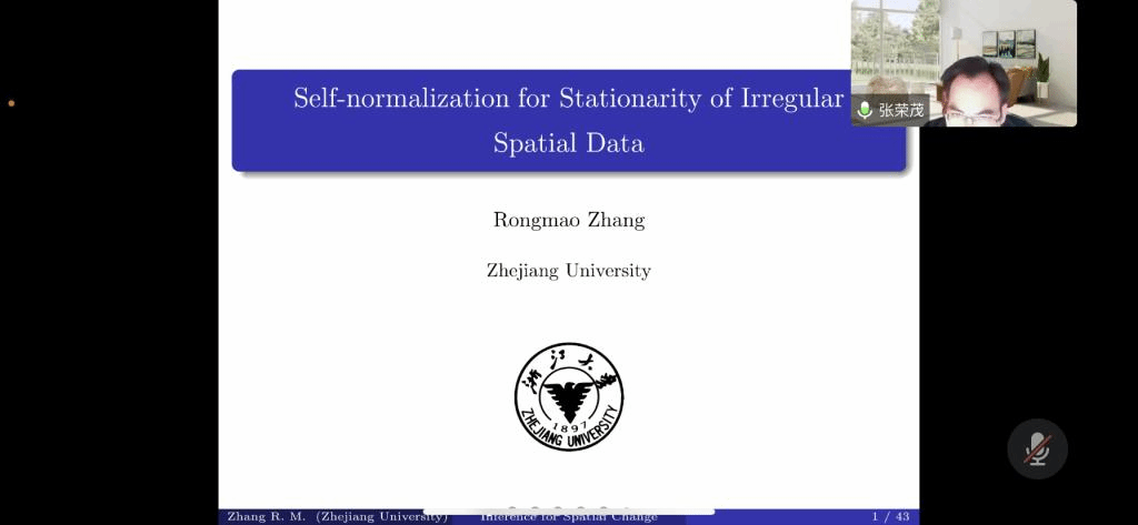 邀请,12月16日下午,浙江大学张荣茂教授在腾讯会议作了题为《Self-normalization for Stationarity of Irregular Spatial Data》的报告。相关师生聆听了此次报告,报告由吕阳阳老师主持。