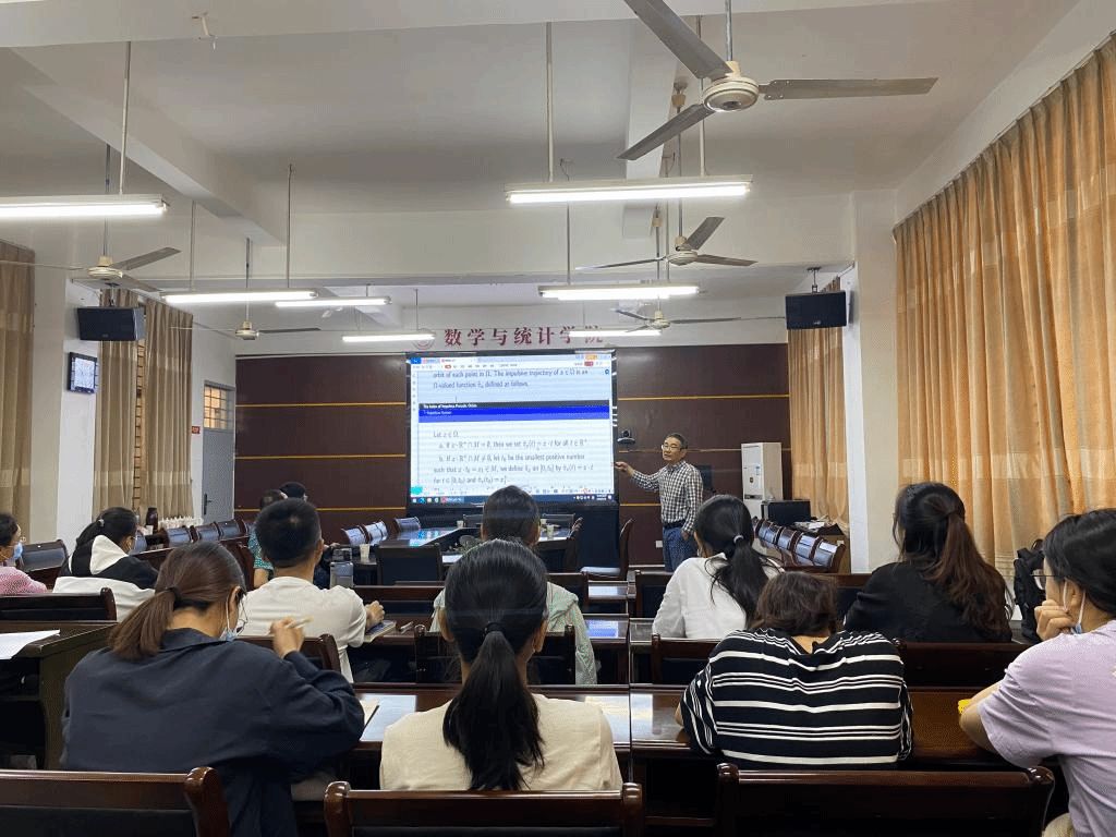 报告中,丁昌明教授主要介绍了脉冲周期轨指标的定义,其次讨论如何使用周期轨的指标来解决周期轨的稳定性问题,最后我们提出几个可以继续探讨的问题。报告结束后,在座的师生就相关研究问题进行了探讨和交流。
