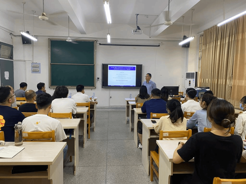 邀请,6月7日下午,集美大学晏卫根教授在砺志楼105作了题为《On the edge reconstruction of characteristic and permanental polynomials of digraphs》的报告。相关师生聆听了此次报告,报告由卢福良老师主持。