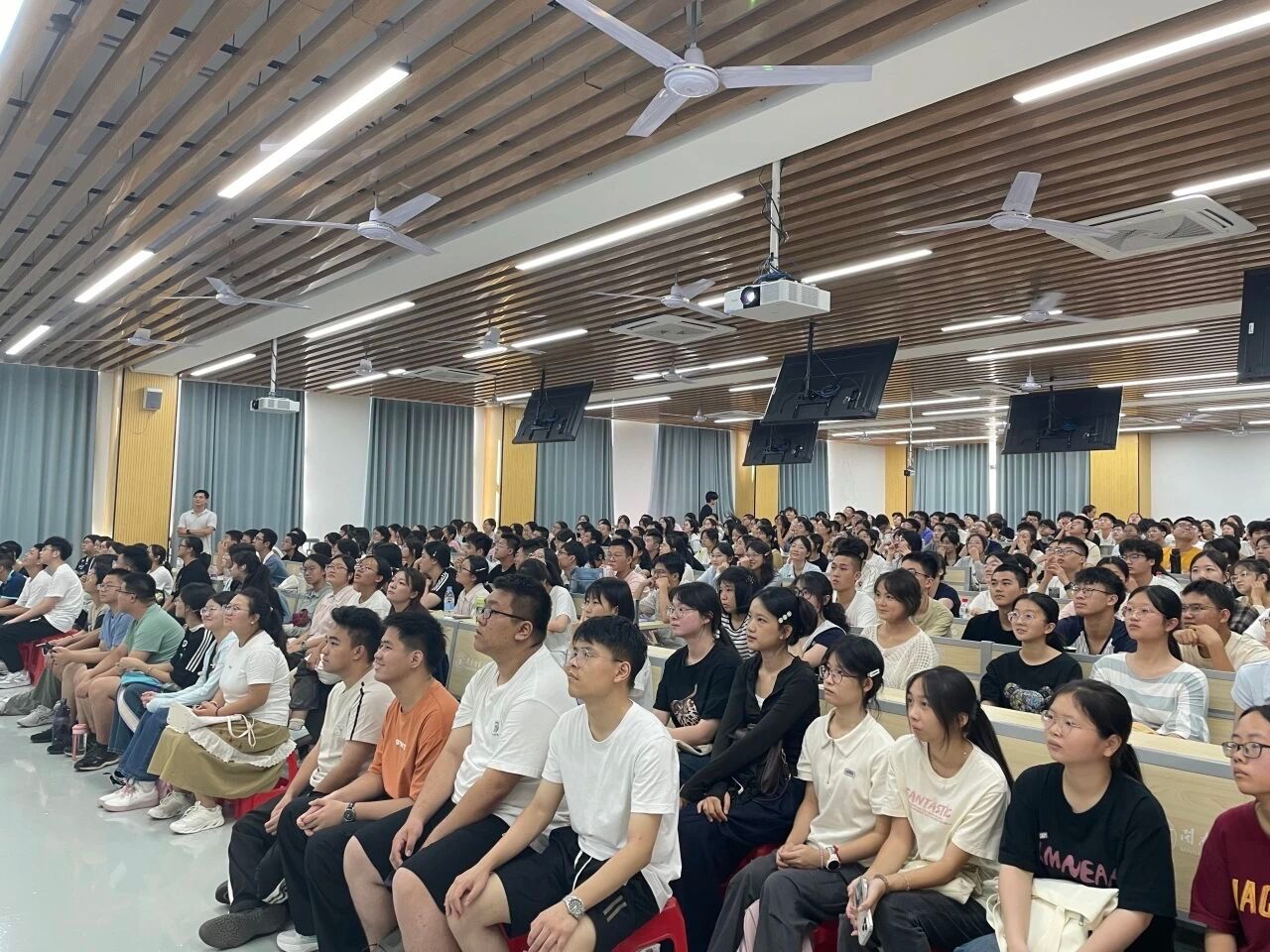 开展反诈宣讲。县前派出所林武华警官、漳州市公安局芗城分局刑侦大队杨小娟警官到场参加。杨小娟以专业视角主讲,为新生带来了一堂干货满溢的“入学安全必修课”。