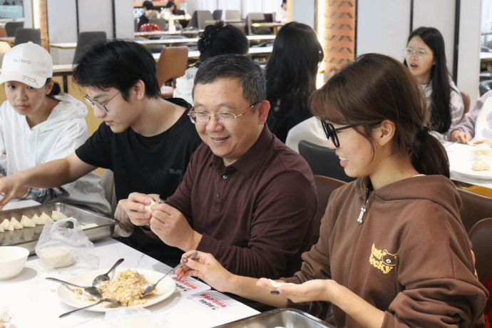 领导、老师与勤工学子们齐聚一堂,共包暖心饺、共度冬至节。