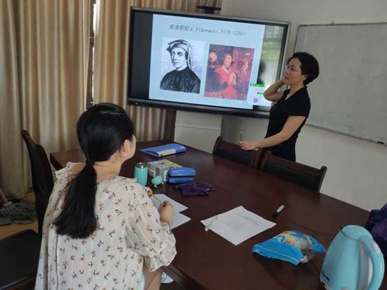 邀请,7月17日上午,山东大学冯俊娥教授在八号楼107作了《斐波那契数》的报告。相关师生聆听了此次报告。