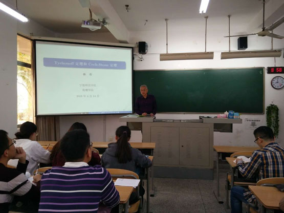 ech-Stone紧化定理》的报告。相关老师和学生聆听了此次报告,报告由唐忠宝老师主持。