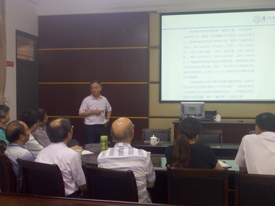 在报告中,谭绍滨教授首先介绍第四轮学科评估,例如2017年全国学科建设评估的结果;其次介绍厦门大学学科现状和评估评价指标体系,例如2017年ESI排名,国内各专业学科建设排名;最后教学与科研协调发展,博士点建设指标体系,学科评估指标体系的变化。报告结束后,在座的老师和学生就相关研究问题进行了探讨和交流。