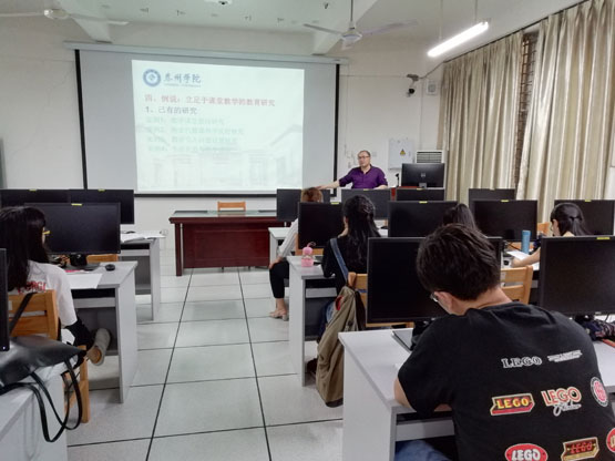 程广文教授在砺志楼105作了《立足课堂,开展教育科学研究的路径和方法》的报告,报告由周仕荣教授主持。