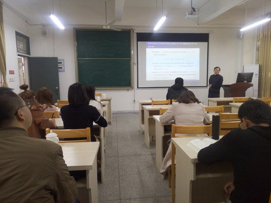 邀请,12月23日上午,福建师范大学陈正新教授在砺志楼105作了《Commuting automorphisms of Lie algebras and Lie groups》的报告。相关老师和学生聆听了报告,报告由林卫强教授主持。