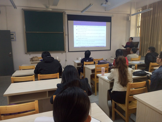邀请,12月9日上午,北京应用物理与计算数学研究所黄代文研究员在砺志楼105作了《某些分数阶偏微分方程的研究》的报告。相关老师和学生聆听了报告,报告由吴晓锋教授主持。