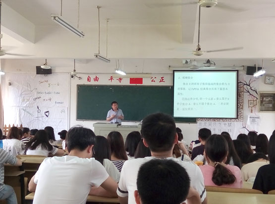 在报告中,史教授主要从模糊数学的产生背景、模糊集合、模糊集合的运算(满足幂等律、交换律、结合律、吸收律、分配律、复原律、对偶律、定常律、传递律)、模糊集的分解等四个方面进行讲解。史教授对如何确定一个模糊集给出了实用的Zadeh记法,并举出例子说明。其中,对模糊集合的运算和模糊集的分解也给出相应例子以便于听众的理解。史教授特别强调:模糊集合的运算是排除“排中律”的,旨在说明模糊集不再具有“非此即彼”的特点,这正是模糊性带来的本质特征。报告结束后,在座的老师和学生就相关研究问题进行了探讨和交流。