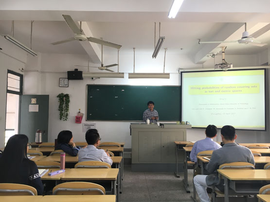邀请,4月15日上午,华南理工大学李兵教授在砺志楼301作了《Hitting probabilities of random coveing sets in tori and metric spaces》的报告。相关老师聆听了此次报告,报告由李进军副教授主持。