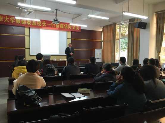 邀请,2月16日下午,岛根大学校长服部泰直教授在砺志楼114作了《Topological spaces derived from a study on topological aspects in domain theory》的报告。相关老师和学生聆听了此次报告,报告由林梦雷院长主持。