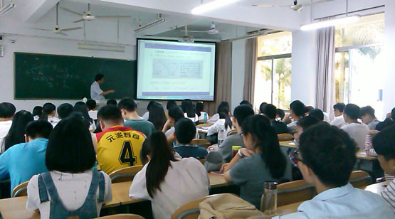 在报告《对称之美》中,杜少飞教授从群和图的定义开始讲起,介绍怎样用群去构造一些优美的图,以及图在曲面上嵌入的一些入门知识。通过这个报告,杜教授向大家展示了对称性较强的图不但给人以美感,而且在计算机网络等方面有着重要的应用。介绍了群是研究对称性的最重要的工具,将二者结合起来,用群作为工具研究图对称性,通过高对称性的图的研究反过来丰富和发展群的理论。报告结束后,在座的老师和学生就相关研究问题进行了探讨和交流。