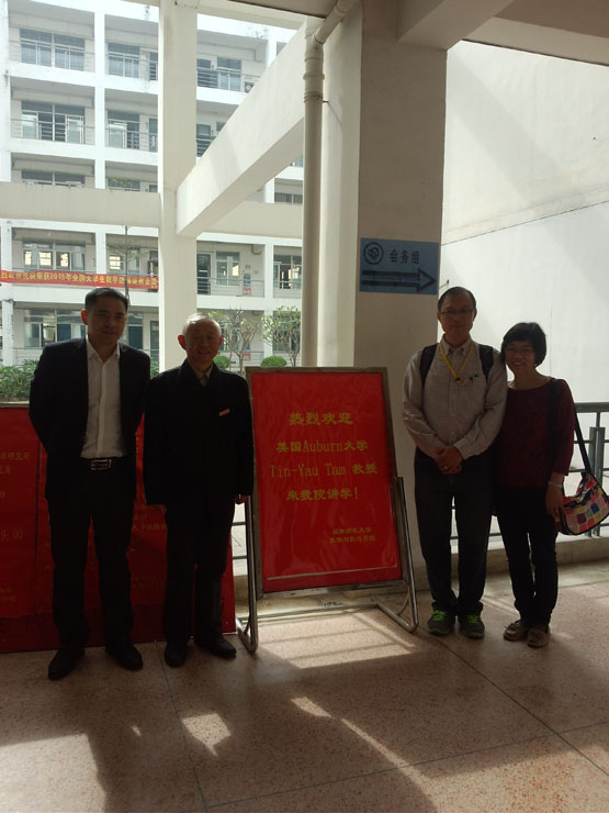 Tin-Yau Tam(谭天佑), Professor of Mathematics of Auburn University, Alabama, USA. He obtained his Ph.D. from the University of Hong Kong in 1986. He have taught at the City University of Hong Kong and then joined Auburn University in 1988. His research interest includes Lie groups and Lie algebras, numerical range and its generalization, Multilinear algebra, and their applications. He published about 80 papers and has been guest editor of some special issues of Linear and Multilinear Algebra. He gave numerous talks in different conferences and meetings. He is on the editorial board of Linear and Multilinear Algebra, Electronic Journal of Linear Algebra, Proyecciones Revista de Matematica. He serves on the Board of Directors of the International Linear Algebra Society (ILAS).