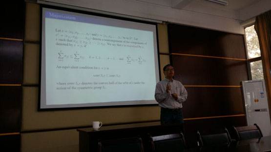 邀请,1月4日上午,美国Auburn大学Tin-Yau Tam教授在砺志楼114作了一场《Matrix Inequalities on Group Level and Algebra Level》的报告。相关老师和学生聆听了此次报告。