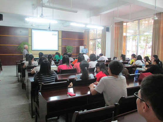 师生在砺志楼114会议室做了两场学术报告,报告由院长李克典教授主持。