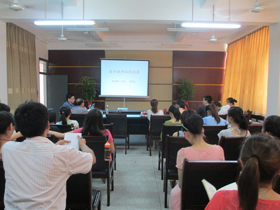 报告会上,李老师首先介绍了“说课”与“讲课”的区别、说课的基本内容 以及开展“说课”活动的意义”等内容。接着,李老师以“函数的单调性”、“椭圆及其标准方程”和“等比数列”等为例,给在场师生详细讲解了怎样说好一节课。李老师的报告通俗易懂,让在场的师生受益匪浅。