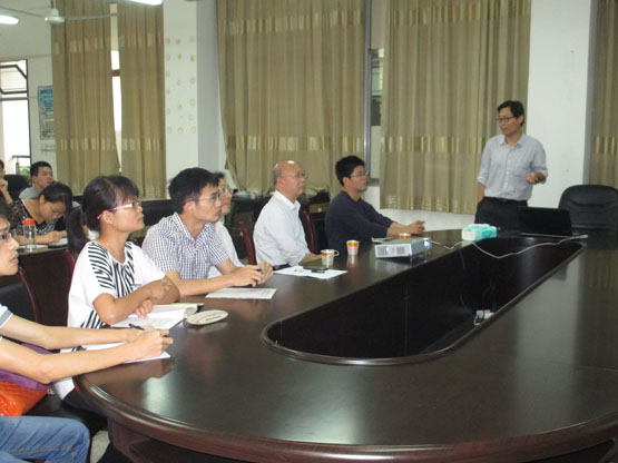 报告会上,侯老师首先介绍了“Introduction”、“Planar graphs and sparse graphs”、“Acyclic edge coloring of graphs with △ colors”、“Linear arboricity”和“Open problems”等内容。侯老师从最简单的“四色问题”出发,使整个讲座内容通俗易懂,让在场的师生受益匪浅。最后,侯老师和在场的师生进行了亲切的交流。