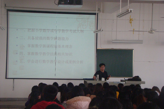 李祎教授、博导在励志120教室为数学系300多名学生做了一场“基于新课程理念的数学教学设计与案例分析”的精彩讲座。