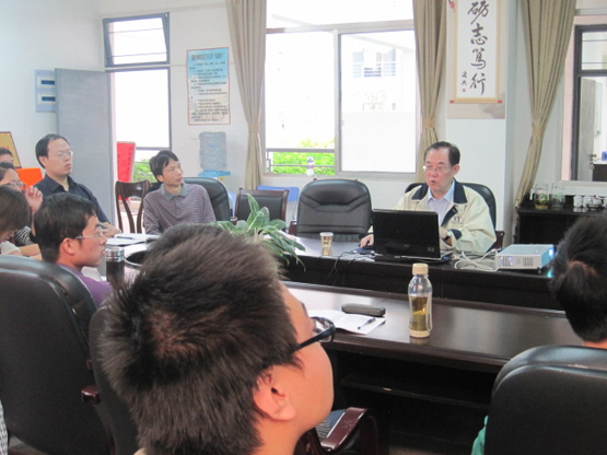 在报告会上,王国俊教授先介绍了模型检验的定义和迁移系统,然后对线性时态逻辑和计算树逻辑进行了详尽的解释,紧接着又将两者的公式做了全面的比较,最后给出了CTL模型检验和LTL模型检验的具体思路。报告完毕,王教授一一回答了在场师生提出的问题,大家都感到受益良多,拓宽了学术视野,廓清了许多疑惑。