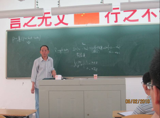 报告会上,史开泉教授首先举例说明P-集合存在的事实,给出P-集合与Z.Pawlak粗集及L.A Zadeh模糊集的区别。进而给出内P-集合和外P-集合的概念,以及由内P-集合和外P-集合构成的集合对,说明P-集合具有的动态特性;并利用P-集合的概念,给出信息遗传概念和信息遗传的度量,提出信息遗传定理;并利用信息遗传特性,给出信息状态识别的方法和应用。在此基础上,给出信息图像生成,信息图像隐匿-潜藏的应用,说明P-集合是研究动态信息系统的一个新的理论与方法。 史教授旁征博引,风趣幽默,将一个个枯燥的数学概念讲的通俗易懂,引人入胜。最后在座师生与史教授进行热烈的探讨,史教授的精彩回答赢得了老师和同学们的阵阵掌声。