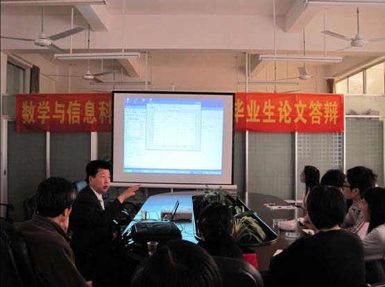 余教授先就单边和双边的燃烧模型进行比较,而后采用弱非线性分析法求出模型数值解,并分析解的复杂非线性动力行为。接着余教授介绍了三种经典的二阶偏微分方程,即波动方程,振动方程及拉普拉斯方程,并采用分类变量法、基本解法和保角映射法对应的求解这三类方程。同时,余教授就特征值及其应用问题,用地道的英语教学方式,给我系本科生做了生动的报告。最后,余教授悉心解答了在场师生的问题,也介绍了美国的教育制度及申请赴美留学需要的材料。余教授善于将复杂难懂的数学思想用一种深入浅出的方式传达给听众,从报告中我们不仅可以感受到余教授渊博精深的学识,灵活创新的思维,而且可以体会到他严谨认真的科研精神,虚怀若谷的科学态度。
