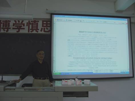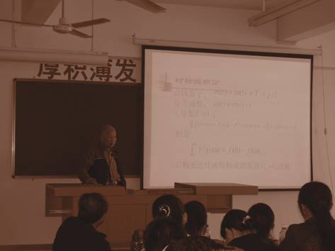 在漳期间,几位教授还分别为数学与信息科学系的师生带来了数场精彩的学术报告,分别是:赵怡教授的《关于非线性动力学的理论与方法在癫痫病的分析与预报中的应用》、《经济领域中长鞭效应的数学研究》;朱思铭教授的《时标动态方程的定性分析》;陈树辉教授是计算结构力学和振动理论与控制的专家,他带来了题为《一类新的摄动方法——双曲函数摄动法》的讲座。几场报告内容丰富、关注学术前沿问题,教授们讲解深入浅出,反响良好。